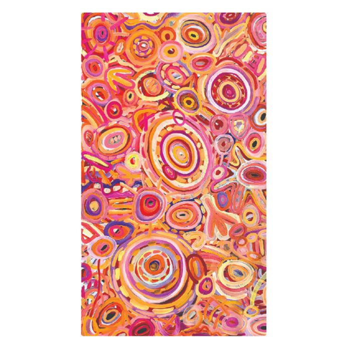 Red Sand Dunes is painted by Wiluna artist Dallas Harris. This design depicts dreamtime mother earth and the shifting sands of this remote outback reg