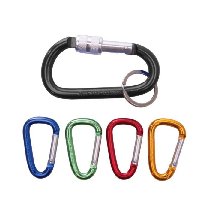 Handy set of Carabiners great for outdoor activities!Set consists of:1 Large Locking Carabiner4 Small Carabiners1 Key ring