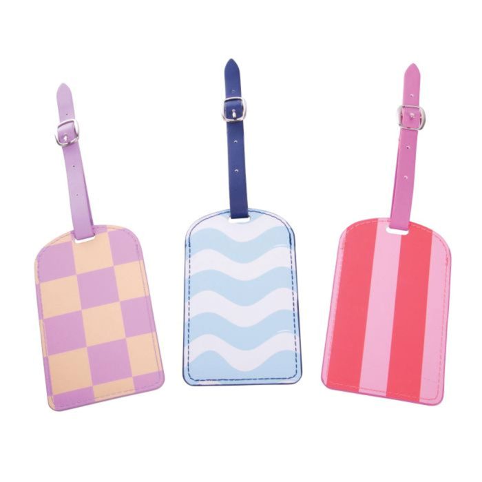 Easily identify your luggage at baggage claim with a vibrant luggage tag! Made from PU leather with metal buckle and window for address details.Design