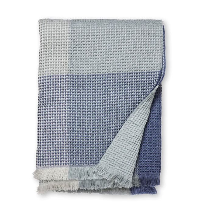 The Walker throw features a large multicoloured check in a waffle texture with fringed edges. Designed with colour and texture in mind, this throw is
