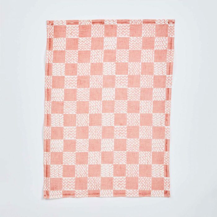 Bonnie and Neil's Drift Petal tea towel features original artwork by Bonnie, hand screen printed on white linen. From their Dandelion collection, this