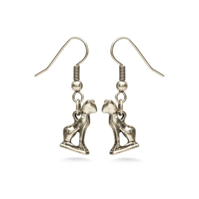 Bastet Cat Earrings – antiqued silver – Dicoveries Inc