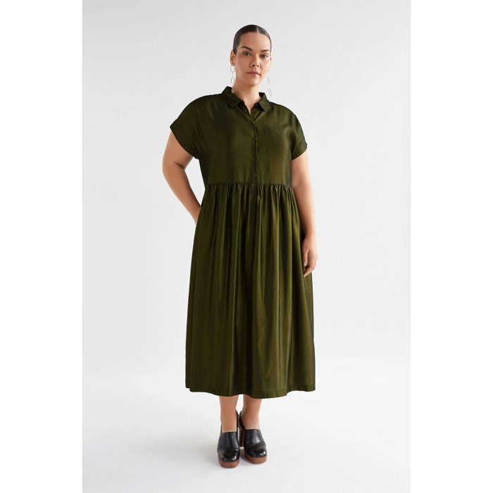 The Medjal Dress strikes the perfect balance between polished and pared back. Batwing sleeves and a button-down front offer relaxed ease, while the me