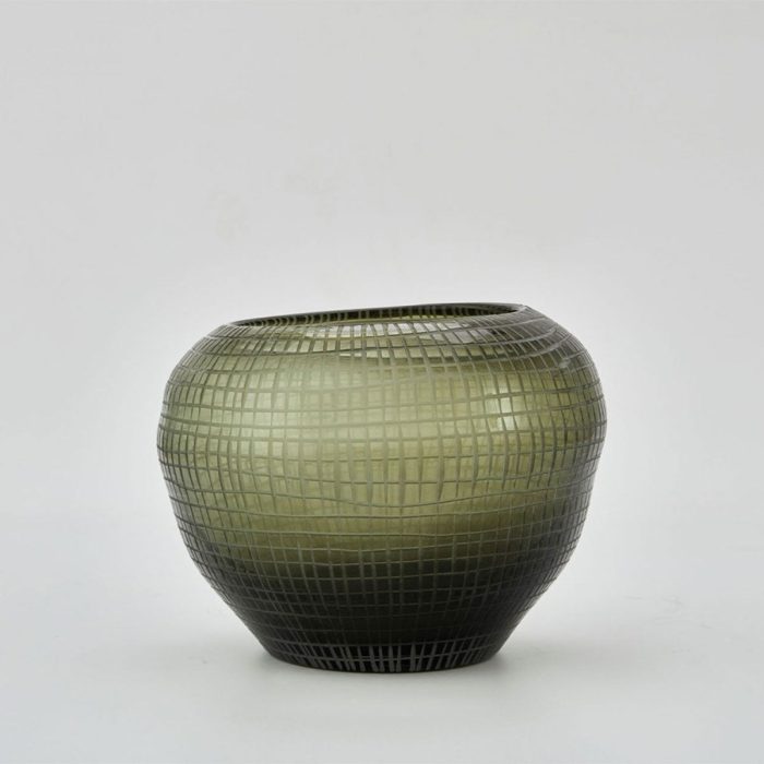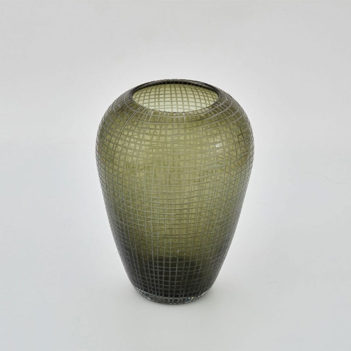 Hand blown and hand finished glass vase.Handmade vases featuring cross etching finish on the outside makes these vases the perfect complement to your