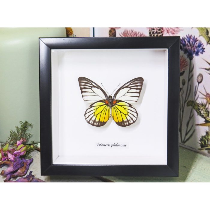 Butterfly Prioneris philonome themana black frame 14.5×14.5cm – Bits and Bugs