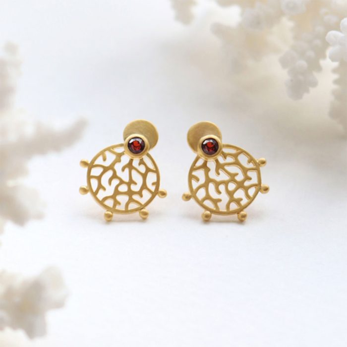 BoldB's Roseni Stud Earrings have been named after the coral species Acropora Roseni and feature a compact round shape with branching coral patterns a