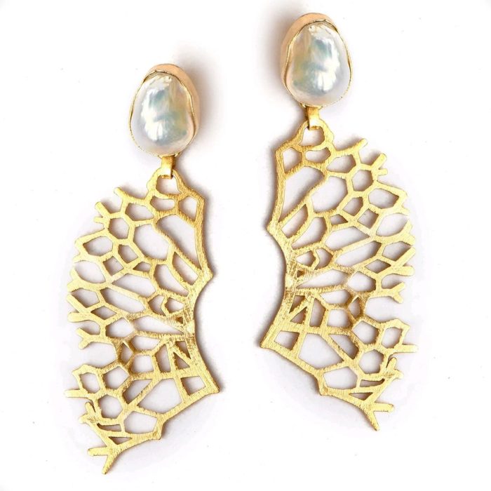 Coral (Pearl) Statement Earrings #772941Stone: PearlMaterial: Brass is the base metal and gold plated up to 14kHandcrafted statement jewellery set wit