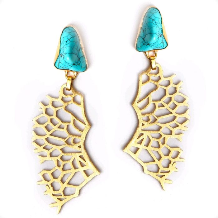Coral (Turquoise) Statement Earrings #772958Stone: TurquoiseMaterial: Brass is the base metal and gold plated up to 14kHandcrafted statement jewellery