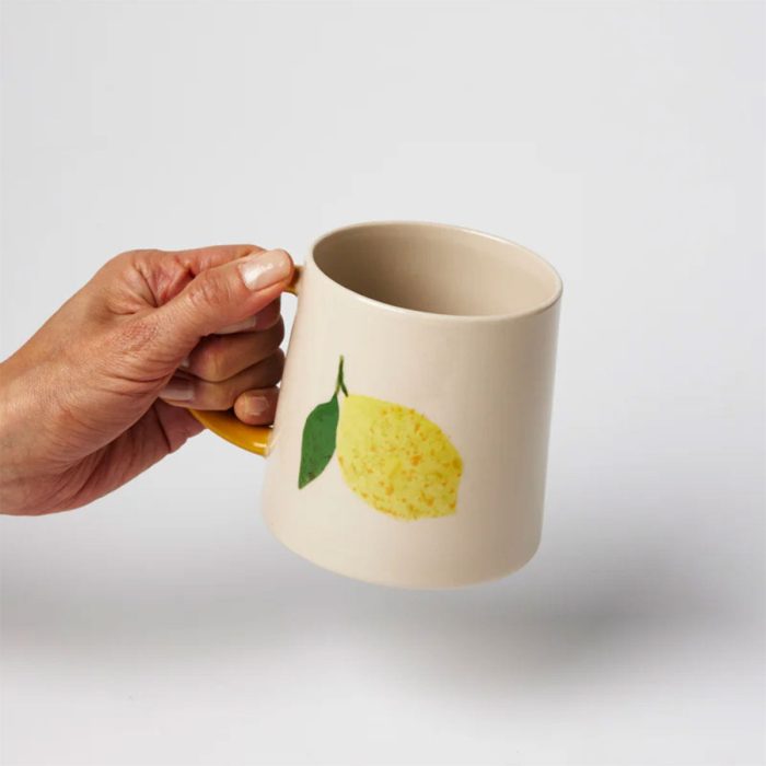 Discover Larder Mugs: Featuring hand-painted fruits these generously sized mugs blend country comfort with modern style. Sturdy handles and ample capa