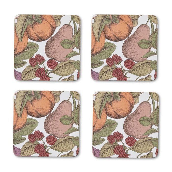 Introducing the Orchard Square Coaster Set from Madras Link – a charming addition to your home décor!Featuring a stunning hand-painted