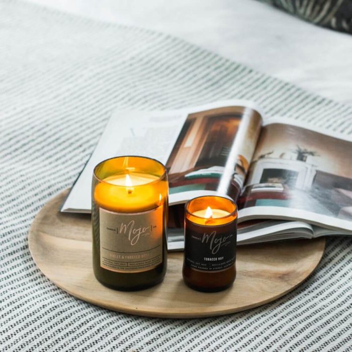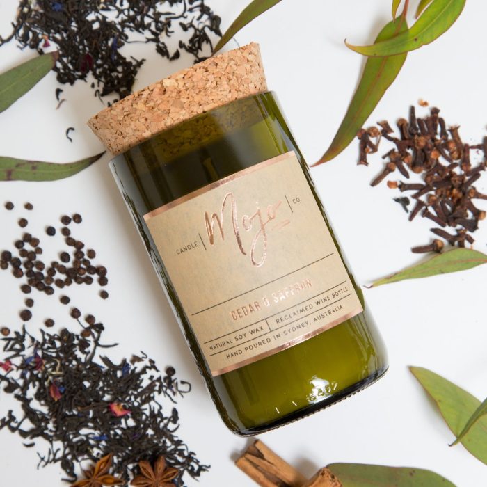 Candle Soy Wax Reclaimed Wine Bottle Cedar and Saffron – Mojo Candle Co
