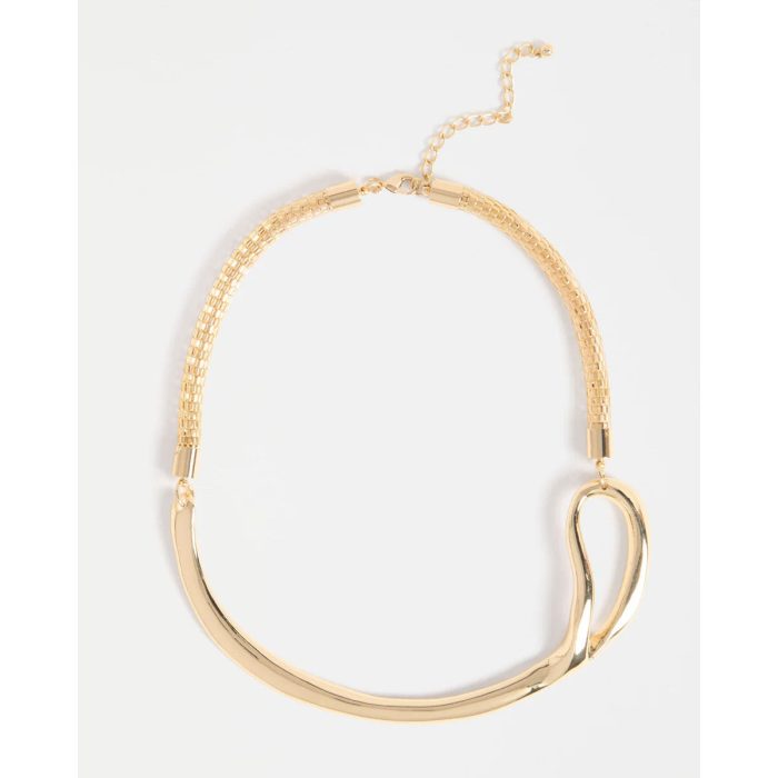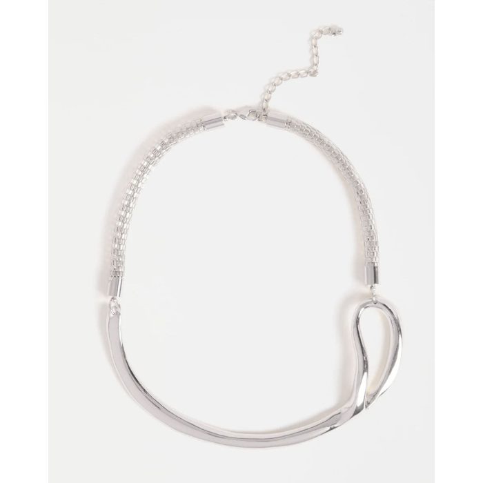 Make a statement in the Delaa Choker Necklace. This unique design features a large sculptural pendant linked to a thick tubular mesh chain in a metall