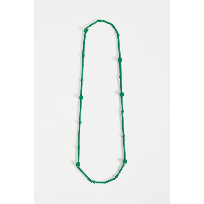 The Dorn Necklace is a long necklace featuring asymmetrical shapes along the chain. This style has five colour options and can be paired with the Dorn