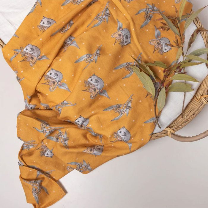 Gumnuts and possums are as Australian as Vegemite on toast. That’s why this cute, familiar character features front and centre in this organic baby swaddle. So when it comes to saying “sleep tight, possum.” you can rest assured your precious little one is well looked after. What makes this baby swaddle so specialThis Possum and Gunmut Baby Swaddle Blanket Organic Wrap not only feels like a warm hug, it mimics the snug comfort of the womb and keeps bub safe and secure in their new environment.Swaddling your newborn is proven to make the transition from womb to this crazy thing called life a breeze―for baby and the parents who come with it. Babies sleep more soundly, wake less at night and it keeps the startle reflex of the early days in check.Made from 100% organic GOTS-certified cotton, this ultra soft baby swaddle is the perfect newborn gift to treat yourself or a special person in your life. With its stunning nature-inspired print by renowned Australian illustrator Victoria McGrane, this luxe unisex baby swaddle will become baby’s (and mum’s) favourite quicker than yet another nappy change.If you love the calming effect of the incredible Australian flora and fauna as much as we do, then this gorgeous baby swaddle won’t leave your side on outing with your precious little one and when naptime comes knocking. The swaddle ins and outsThe Possum and Gumnut Baby Swaddle ticks all the boxes:    120cm x 120cm so it’s a generous size for your growing bub    100% organic cotton so bub is snug as a bug    GOTS-certified fabrics so you know it’s sourced responsibly    Unisex print so makes the perfect gift for babyshowers or gender reveals    Free from any nasties so nothing but the best comes in contact with baby’s skin    Plastic-free gift box so we do our bit for the environment    Proudly Australian designed so you directly support incredible Australian artists    Australian owned so you know you support a local small business Featured Australian ArtistVictoria McGrane has a background in visual arts with a distinctive creative aesthetic that’s seen her collaborate with notable European and Australian brands. Her intricately hand illustrated work is inspired by her love of travel as she explores the amazing landscapes, colours, flora and fauna of Australia. As this print took shape, she was travelling around Australia in ‘Daisy’, a 1990 Toyota Coaster which she lovingly converted into a motorhome.