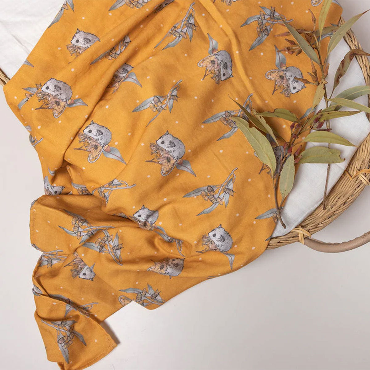 Baby Swaddle Organic Native Bee and Wattle - Little Koala Living