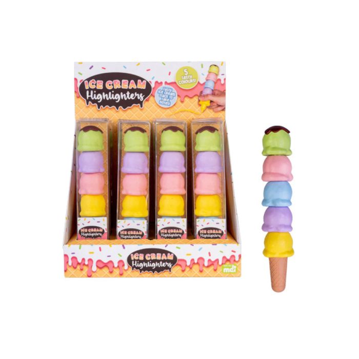 Stackable highlighters in adorable Ice cream shapes.Assorted ink colours with lid, and can be stacked in whatever order you like Dimensions: