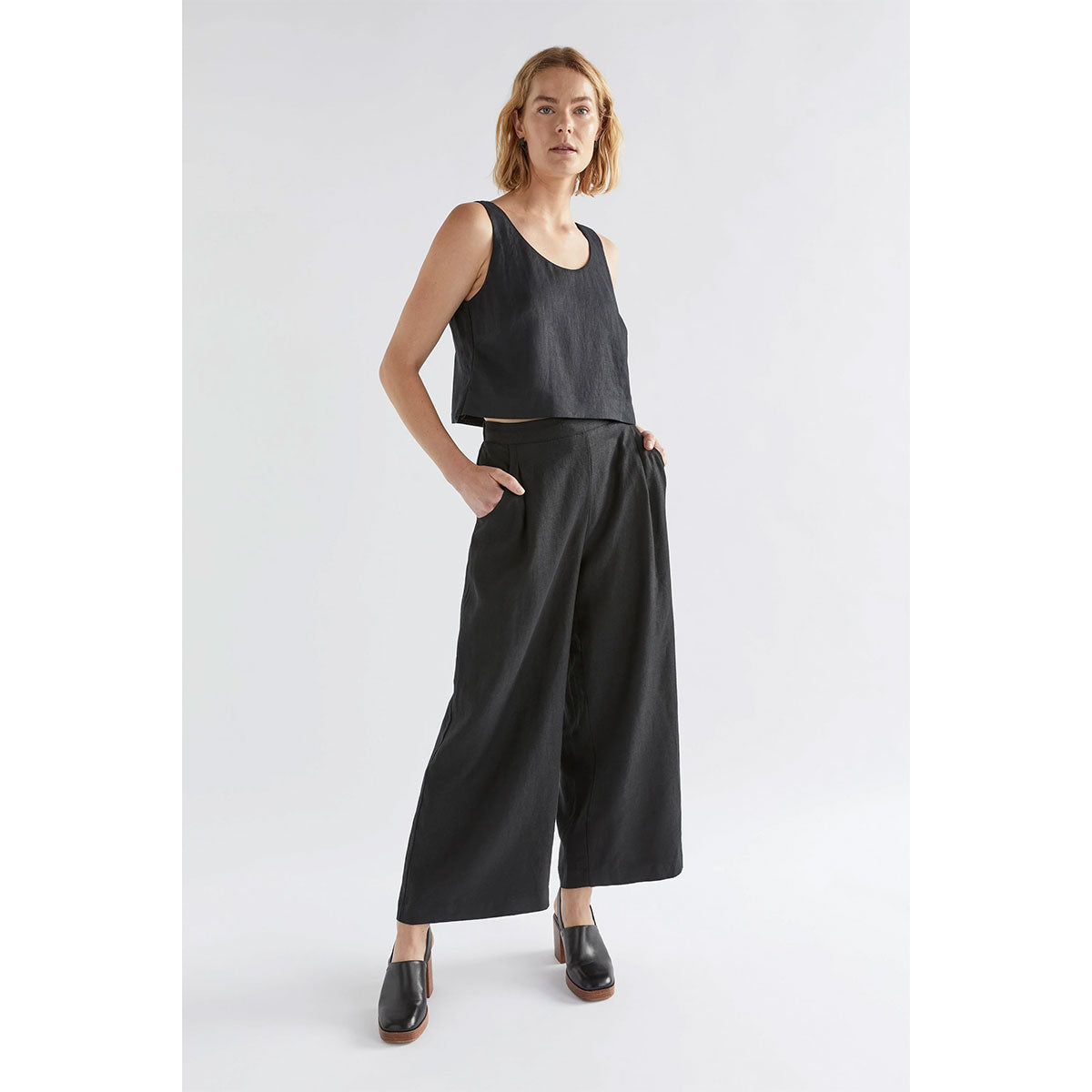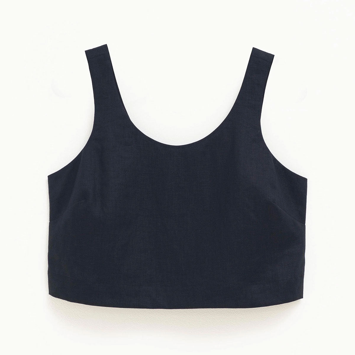The Strom Tank is a cropped-length tank crafted from 100% French linen. Featuring a scooped front and back neckline, the tank also has wide straps wit