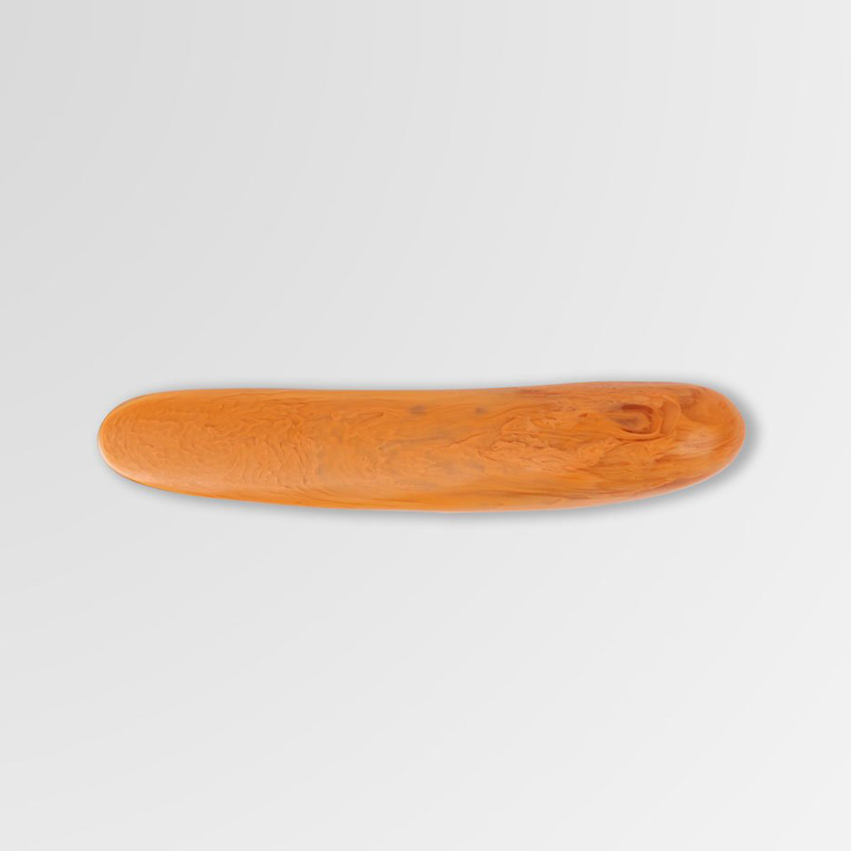 Small resin knife.Approximate dimensionsLength: 14cm / 5.5inWidth: 2.5cm / 1inSuitable for cold service only.Dinosaur Designs resin products are hand made in Australia. Each piece is unique and we cannot guarantee you will receive an item identical to what is shown online. Colours and swirls are a guide only.Resin is strong and durable, yet should be treated like a ceramic as it can break when dropped on knocked against a hard surface. Resin homewares are suitable for cold food service only. These products should be hand washed in warm water only. Resin may appear “frosted” after washing and can be rubbed with a drop of cooking oil to restore sheen. Resin is not fire resistant and so should not be used in an oven, a microwave, dishwasher or as an ashtray.
