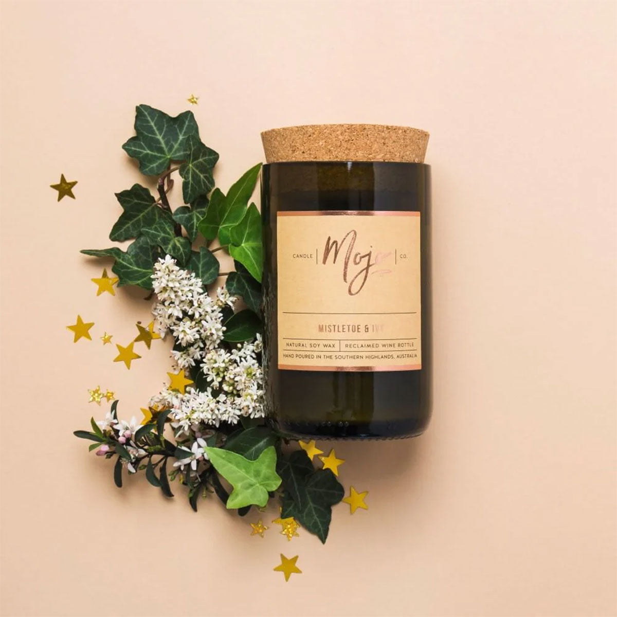 Candle Soy Wax Reclaimed Wine Bottle Mistletoe & Ivy Christmas Edition – Mojo Candle Co