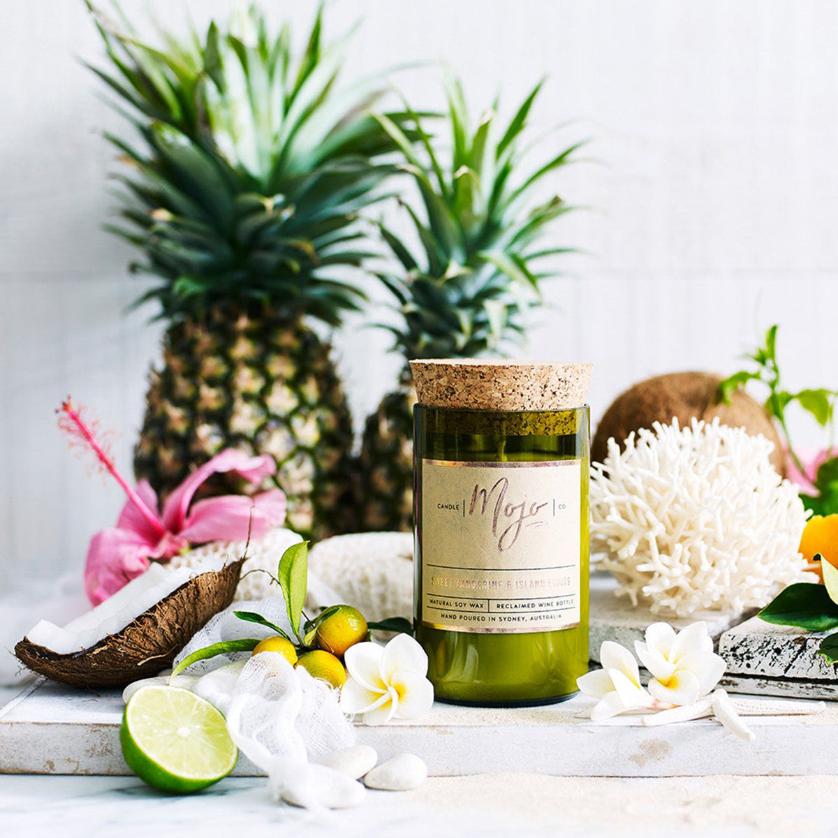 Candle Soy Wax Reclaimed Wine Bottle Sweet Tangerine & Island Fruits – Mojo Candle Co