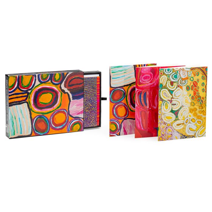 Card pack with 12 assorted cards featuring artwork from the National Museum of Australia exhibition Yiwarra Kuju: The Canning Stock Route.12 cards pri