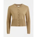 Cropped cardiganRound neckButton-down frontWide ribbed detailMetallic yarn with a taupe base