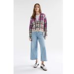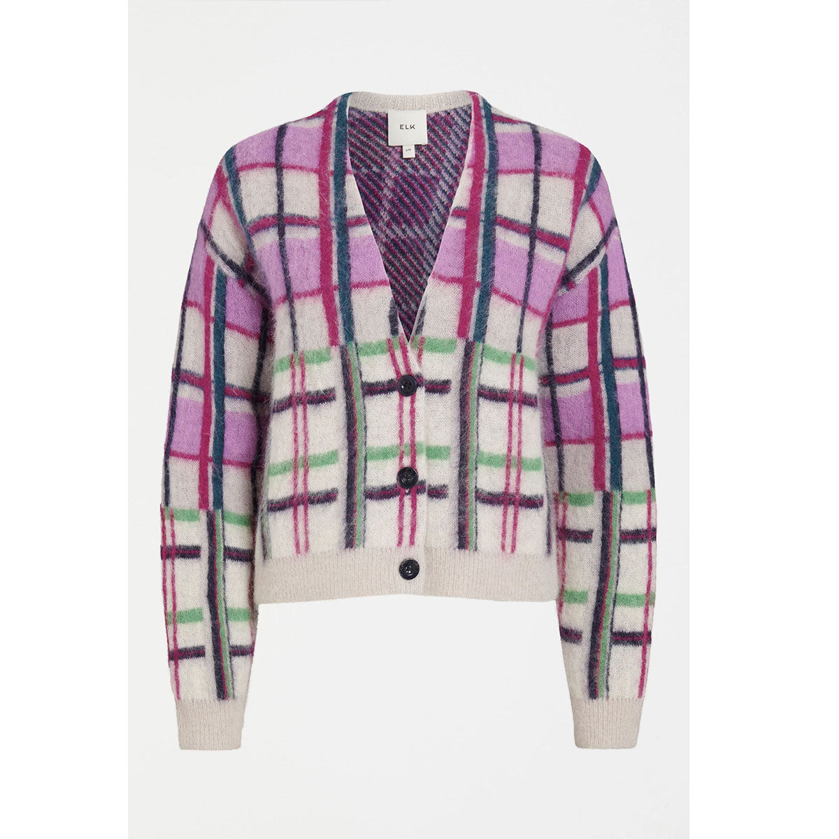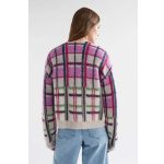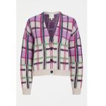 Enliven your knitwear staples with this bold cardigan bringing graphic interest with a vibrant check pattern. In shades of pink, green, and blue, it’s
