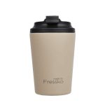 When style meets sustainability.Fressko brings you a stylish, chemical-free, lightweight, insulated stainless steel reusable coffee cup that is the new and improved version of the classic takeaway cafe cup.Keeping style and our coffees, simple.340mlStays hot for up to 3 hours, depending on useInsulated for cold drinks, tooEasy clean, no fuss, click back lidInternal Barista linesFits under standard coffee machinesFits in a standard car cup holderIdeal for travelSip hot beverages safely around young childrenOuter stays cool to the touch Compatible with the Fressko Leather Sleeve, for extra comfort