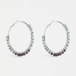 The Oko Hoop Earring is a sophisticated reinterpretation of the classic hoop earring, meticulously crafted by Indian artisans whose skills have been passed down through generations. Glass beads are sprayed with a colourful gradient coating and threaded onto a metal wire hoop. This earring is a closed end large hoop style with a secure omega hook backing. Offered in Denim, Mulberry, and Ecru