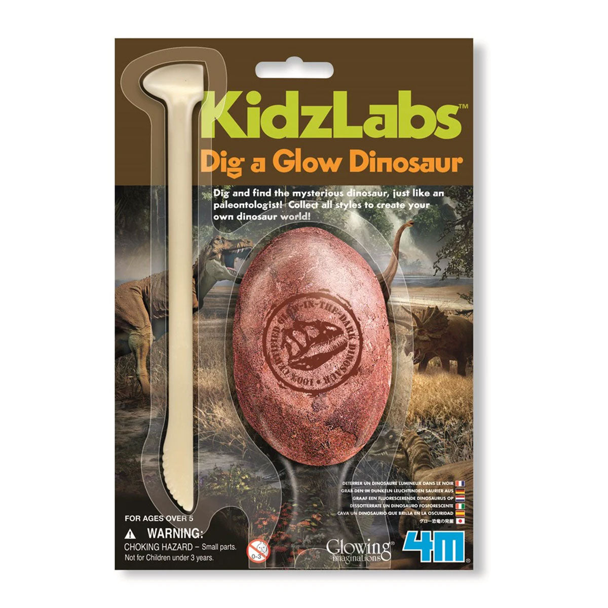 Dig a glow dinosaur!Dig and find the mysterious dinosaur, just like a paleontologist!Dig one dinosaur toy out of the rock.15cm x 22cm x 6cmAge 5+