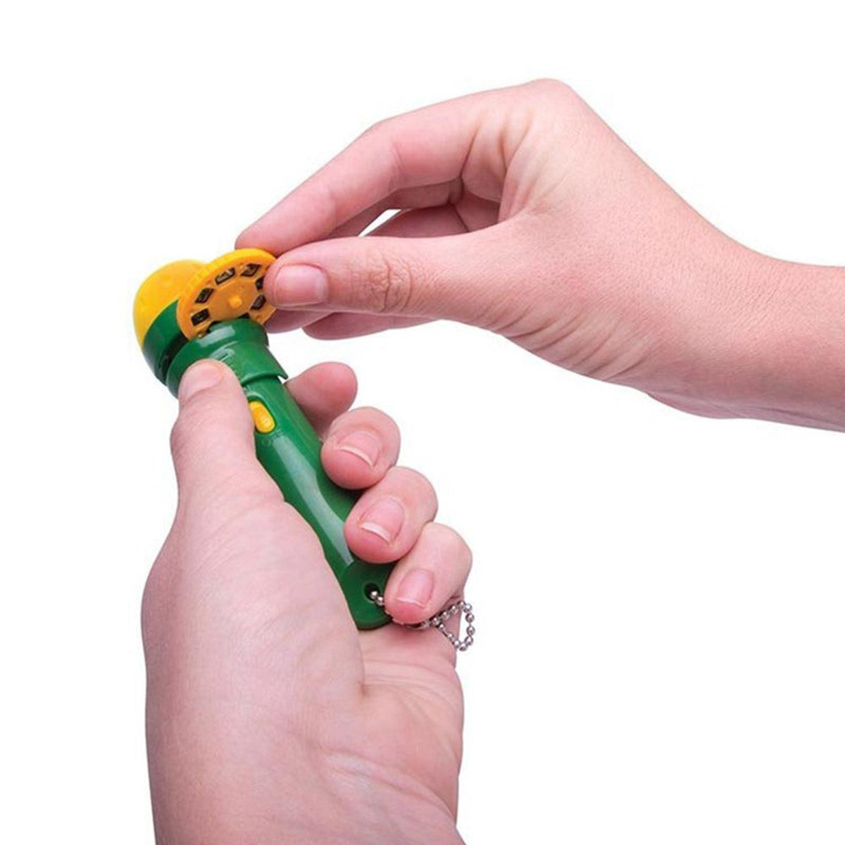 Shine the Torch Projector on your wall or ceiling and project the selected image up to 90cm wide. Includes keychain, so you can take it anywhere.3 photo discs, 8 photos on each discRecommended Age: 3+Batteries Required: AAA battery incl