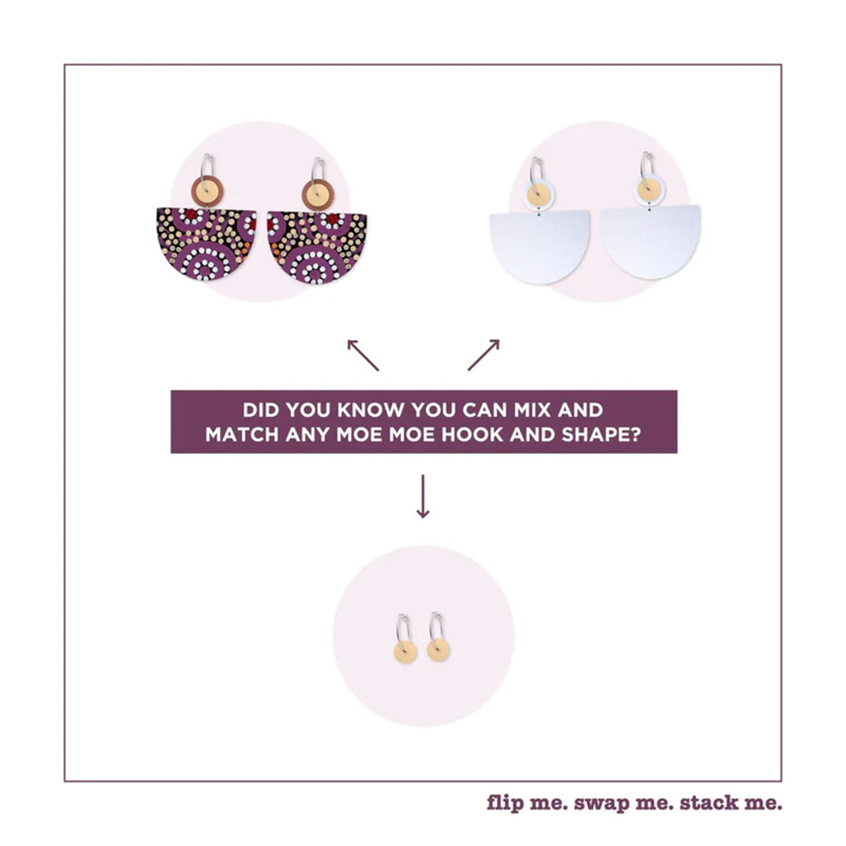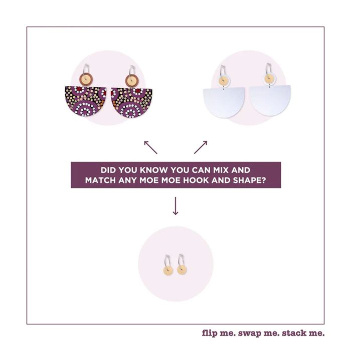 Moe Moe devotees: this one’s for you. A mixture of statement, classic shapes and AMAZING artwork, this is Moe Moe at it’s peak! Featuring art by Azeza Possum. Wear these when you’re prepared to be stopped and asked about them. A LOT.