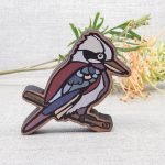 Standing sculptural figurine depicting the Kookaburra, in bright colours on both sides and easily handled. Ideal for small world play or display. Each figure is made from sustainably sourced Australian timber and comes packaged in a recycled card box. Every tree is different, therefore the colour and grain of timber varies, making each of Buttonworks products unique. 8.8cm w x 8cm h x 1.2cm dRecommended Ages 3+