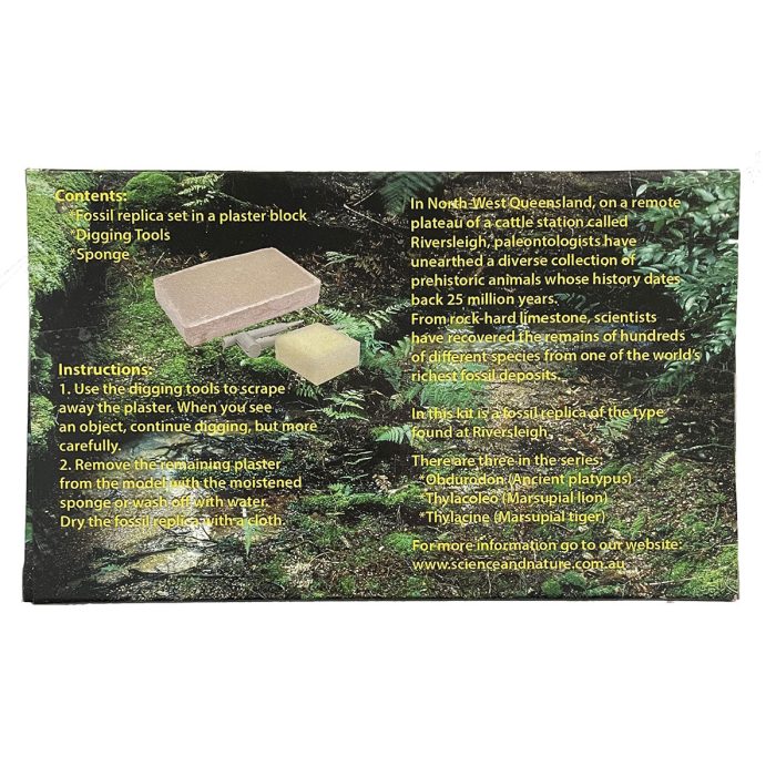 This kit allows budding palaeontologists to scrape away a soft plaster material to reveal the hidden fossil replica.There are three