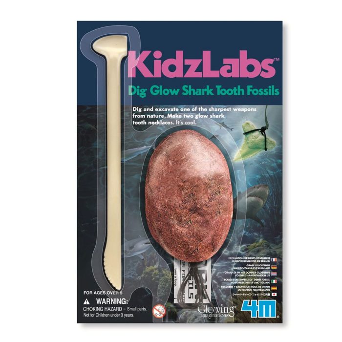 Dig a glow shark tooth fossil out of this fossil rock.Dig and excavate a shark tooth out of the rock.Make a shark tooth necklace with the found shark
