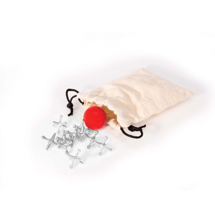Easy to learn.Lots of fun! Set contains: 10 metal jacks & bouncy ball in a cotton drawstring bag.Hours of fun - can anyone get tensies? Great for