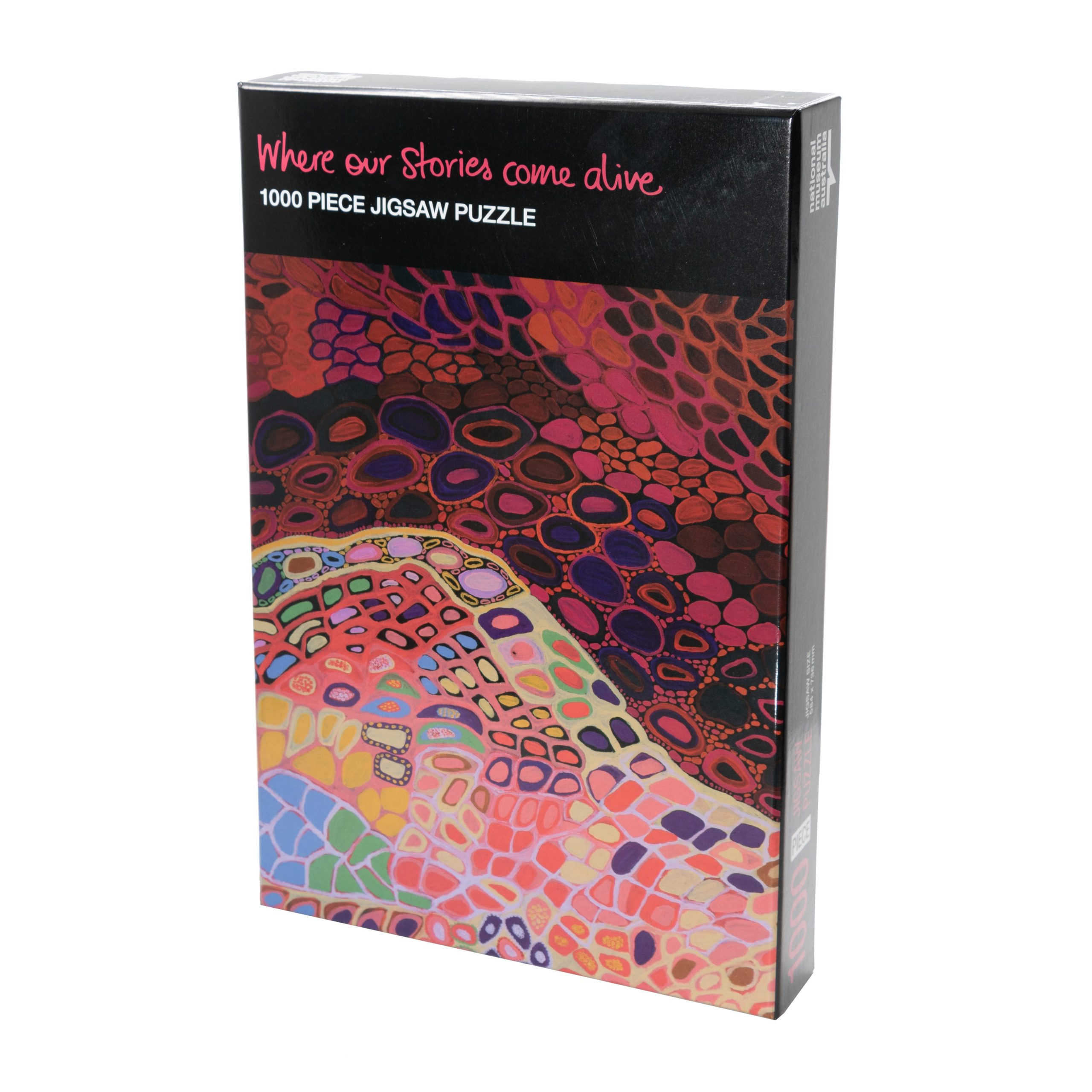 1000pc Jigsaw Puzzle featuring the artwork ‘Corals Night and Day’ by Amanda Jane Gabori and Dorothy Gabori from Mornington Island Art.
