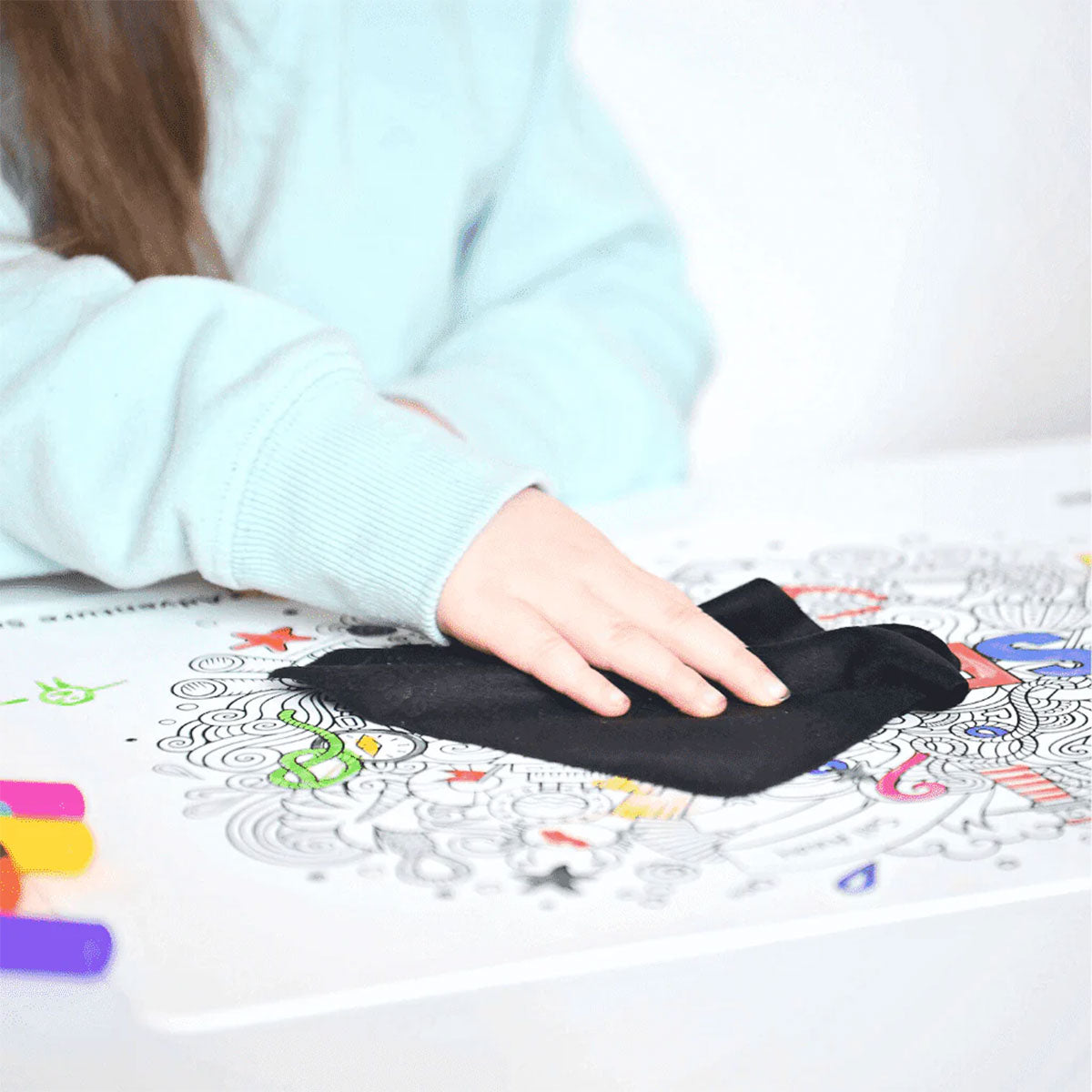 Why Cloth Instead Of Disposable Wipes?Unlike disposable wipes, our sustainable Magic Clean Cloths offer a reusable, eco-friendly solution for keeping your Re-FUN-able™ Colouring Mats spotless. Made from quick-dry fabric, they’re easily refreshed in the washing machine, reducing waste and saving you money.