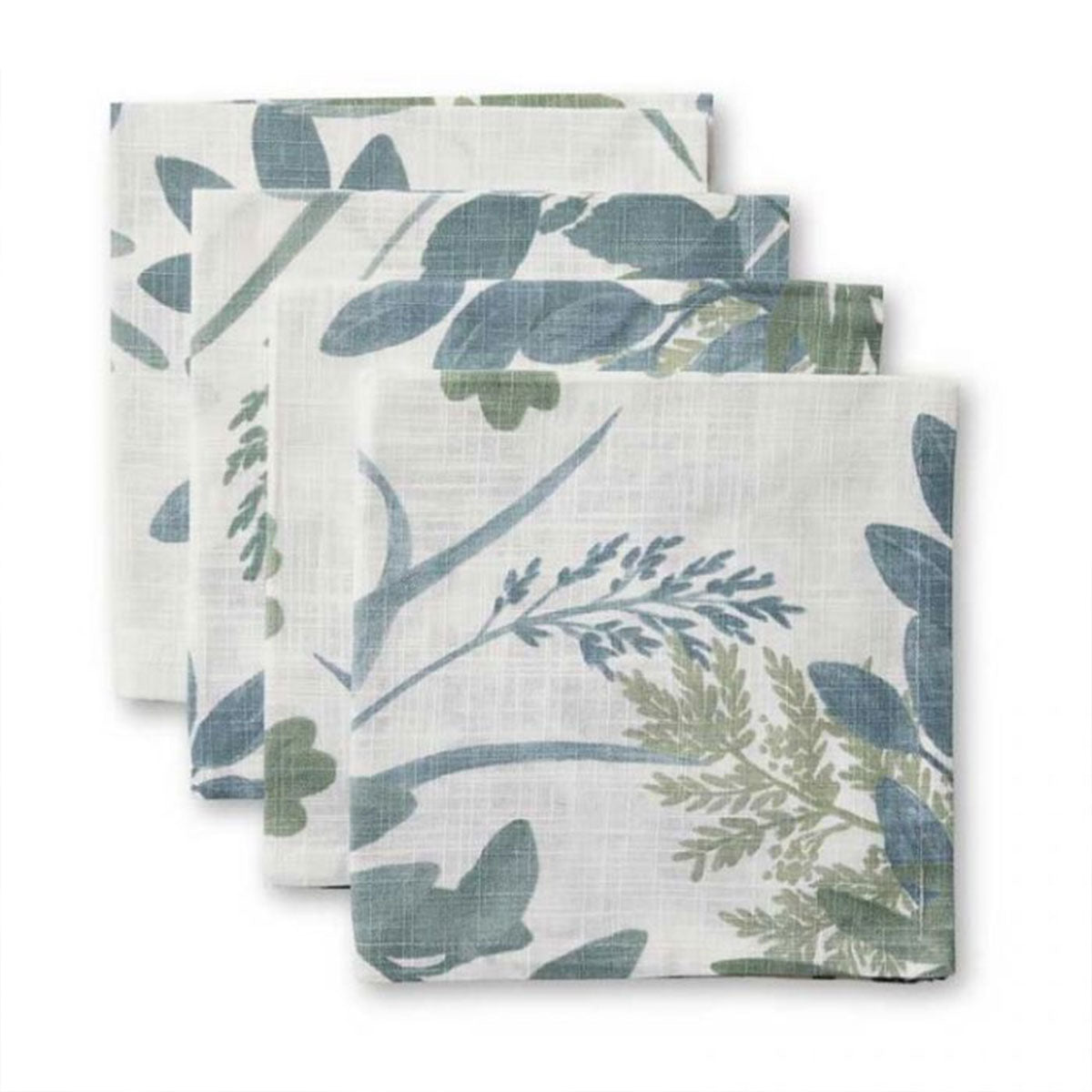 Bring a touch of nature to your table with the Madras Link Naree Napkin Set of 4 in Seafoam. Crafted from soft cotton, each napkin features a botanical design with delicate flowers and lush foliage in calming shades of blue and green.
