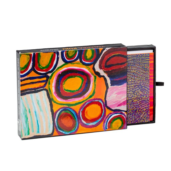 Card pack with 12 assorted cards featuring artwork from the National Museum of Australia exhibition Papunya Painting.12 cards printed on 300gsm art-bo