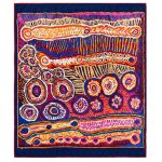 Large Quilted Blanket 172x190cm-MNM619Two dog ancestors, a Jampijinpa and a Napangardi, travelled from the west to the east. They dug holes in the ground and created ‘warnirri’ (rockholes) and ‘ngapa’ (waterholes) as they went. The two dogs separated. Eventually Jampijinpa became lonely and howled for Napangardi in the south. She came running to him, and they married each other at Ngarnka.