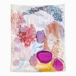 Wilarra is the word for moon in Manyjiljarra, and also the name of the site depicted in this work. A cluster of saltwater pools known for their healing properties are found at the site, and Martu people still frequent them to bathe cuts and sores. Mulyatingki Marney and her sisters often camped at Wilarra where a wungkurr (windbreak) provided shelter. Of this ethereal work, Marney says:“The moon and the lake. The moon is taking care of the dingo pups, it’s looking after them. This here is the salt lake [and the] dingo pups here laying down, they’re laying there with their mum. [The] father is here, [the] father of the pups with his wife. They are talking to each other, laying down next to each other. They sang out, kept howling. The pups listened and ran away. The moon is laying down taking care of the pups.”In Jukurrpa (Dreaming) times, the moon called a family of dingoes to Wilarra where she cared for them, creating a windbreak for the family to shelter. The dingoes then continued their travels, following the moon to the east, stopping at various sites along the way.87cm x 115cm 14mm 100% silk satin with hand rolled edges.