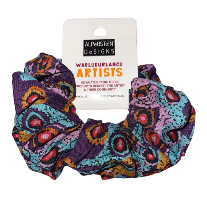 Royalties from this product directly benefit the artists and their community.Cotton Hair scrunchies featuring artwork from Warlukurlangu Artists.Established in 1985 Warlukurlangu Artists Aboriginal Corporation is a not-for-profit organisation that is 100% Aboriginal-owned by its artists from the remote desert communities of Yuendumu and Nyirripi in Central Australia.Print placement may vary between scrunchies and from images shown.