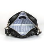 Made from full grain pebbled leather Measures 23(w) x 16(h) x 7(d)cm Detachable adjustable strap Internal zipped pocket, 17(w) x 10(h)cm, for coins and keys Internal open pocket, 17(w) x 10(h)cmFully lined in navy and white striped cotton