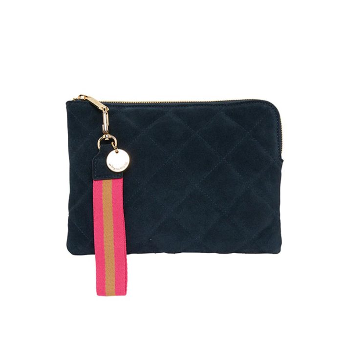 Made from full grain pebbled leather Measures 23(w) x 16(h) x 7(d)cm Detachable adjustable strap Internal zipped pocket, 17(w) x 10(h)cm, for coins and keys Internal open pocket, 17(w) x 10(h)cmFully lined in navy and white striped cotton