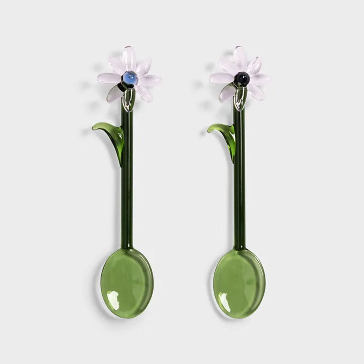 The Flora spoon set is crafted from borosilicate glass, designed to pair perfectly with the Flora water glasses. Featuring hand-placed flowers and lea
