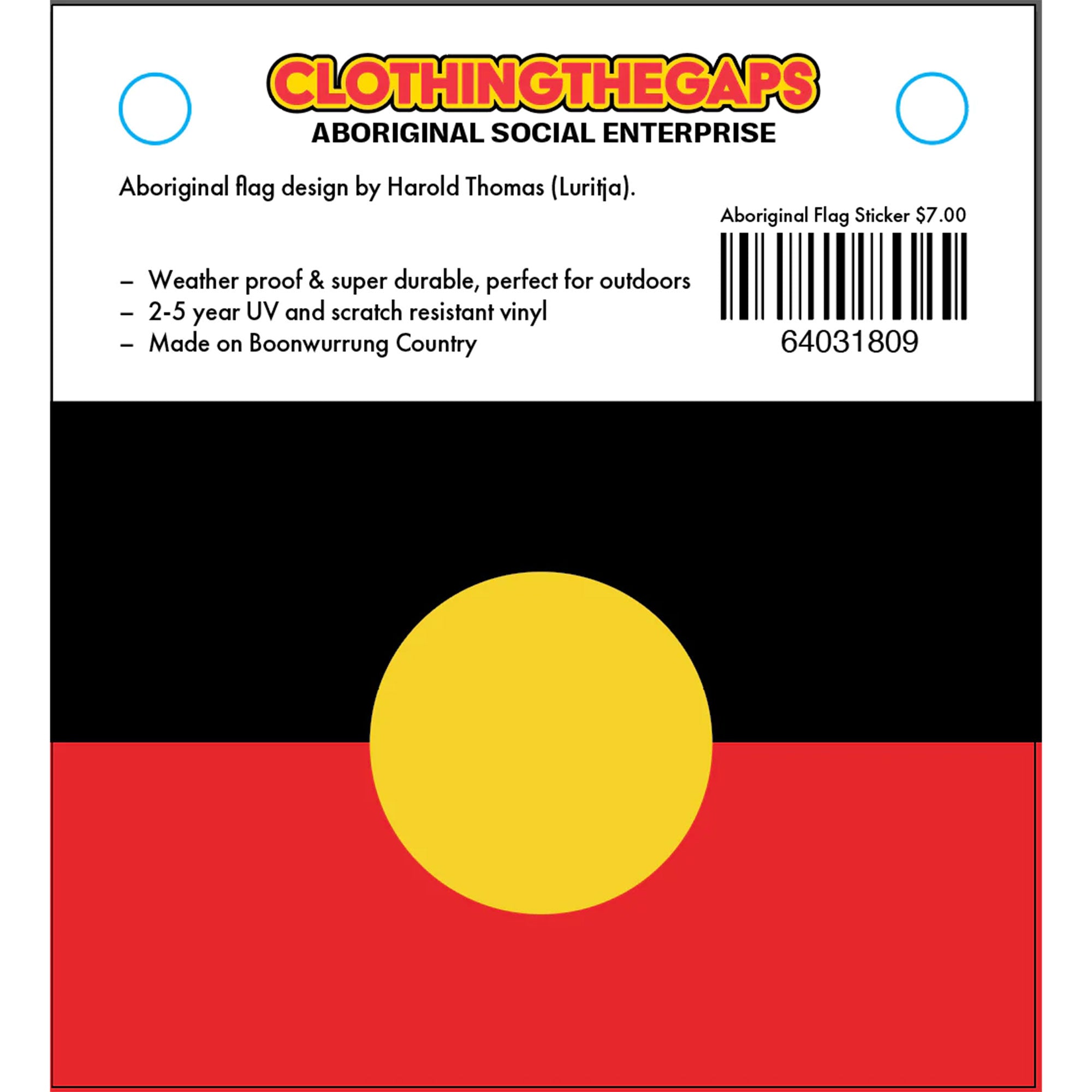 Heavy duty 3-5 year UV weather resistant vinyl Aboriginal flag sticker so they are perfect for your letter box, car, laptop or mobile phone.The Aboriginal flag was designed by Harold Thomas (Luritja). Free(d) The FlagFor over two years Clothing The Gaps have been fighting to see the Aboriginal flag free from the restrictions of copyright. The Government’s announcement on the 25th Jan, 2022 sees the iconic flag, that has become a symbol of Aboriginal Australia, freed and available for public use after its designer, Luritja man Harold Thomas, agreed to transfer its copyright to the Commonwealth following long negotiations.This is an enormous collective win for everyone who has been a part of this movement to #FreeTheFlag. Public advocacy has paid off. The flag is now back in the public domain where it belongs as the public symbol that all flags should be. Aboriginal Flag Meaning The top half of the flag is black to symbolise Aboriginal people. The red in the lower half stands for the earth and the colour of ochre, which has ceremonial significance. The circle of yellow in the centre of the flag represents the sun.The designer Harold Thomas says the colours of the flag represent the Aboriginal people of Australia and their spiritual connection to the land.Specifications Aboriginal Flag Sticker | 10 cm x 6.5 cm