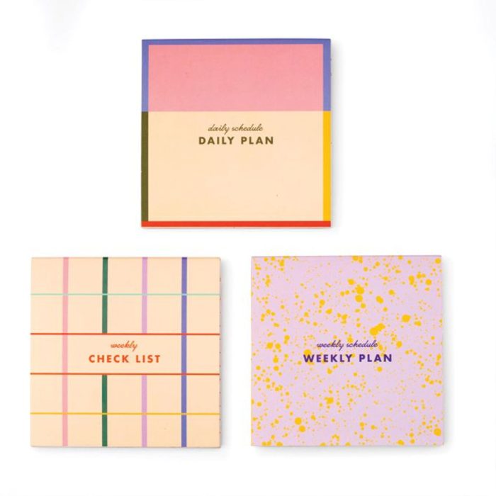 These colorful memos will keep you organized and on top of your goals.Includes 3 pads with 70 pages each: Daily Schedule, Weekly Check List, Weekly Pl