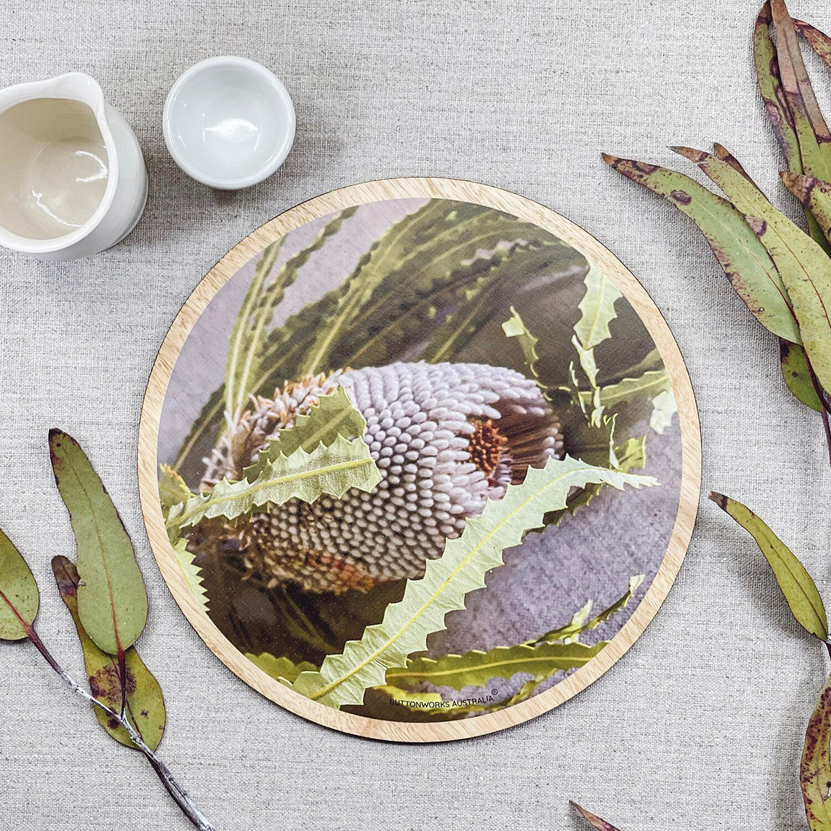 Table Mat Round Botanic Banksia Flower Coloured Set of 4 – ButtonWorks