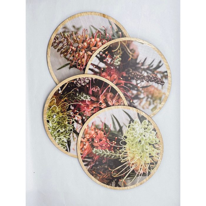 Table Mat Round Botanic Grevillea Coloured Set of 4 – ButtonWorks